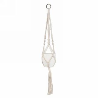 Attitudes - Jardinière en macramé naturel & pot blanc